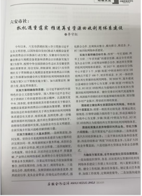 六安市供销合作社联合社监事会副主任李守红解读《关于贯彻推动大规模设备更新和消费品以旧换新工作部署加快健全再生资源回收利用网络体系的实施方案》