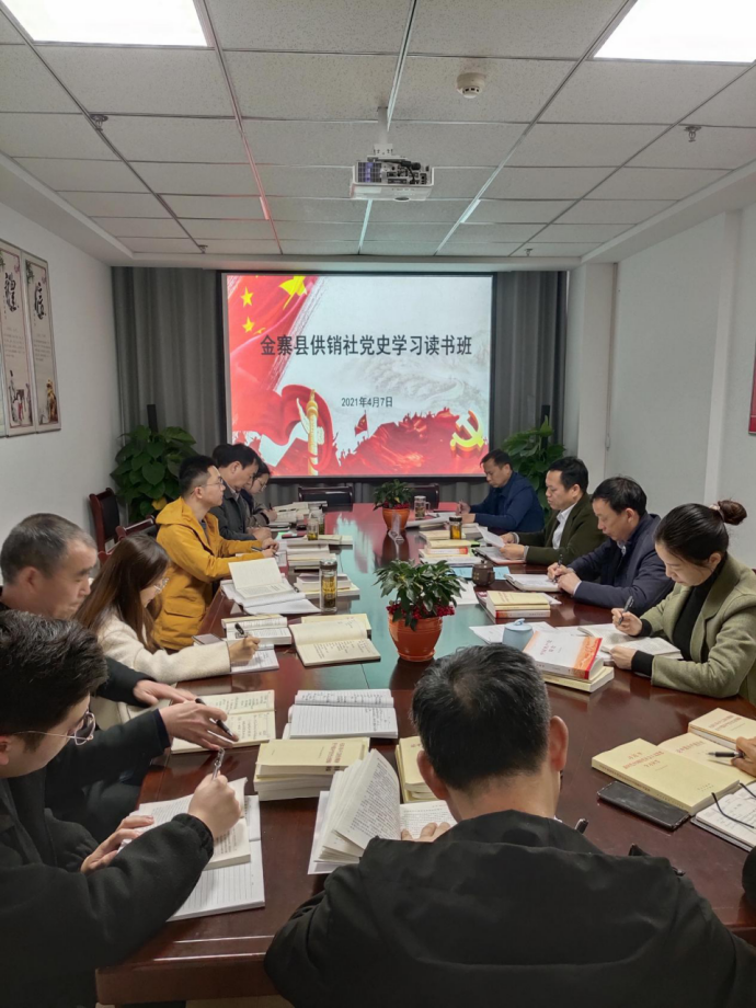 4月7日,金寨县供销社开办党史学习教育读书班,机关全体干部职工参加。